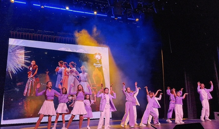 Началась торжественная церемония подведения итогов фестиваля с исполнения его гимна и яркого выступления юных танцоров.