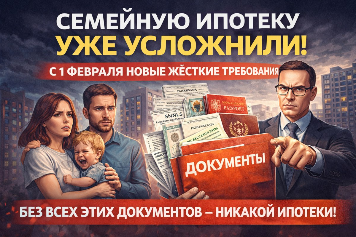 Думаю, стоит отдельно рассказать, что с 1 февраля очень серьёзно ужесточилась выдача семейной ипотеки. Если раньше, по сути, требовалось только желание и наличие ребёнка, то сейчас банки начали запрашивать весьма внушительный пакет документов. Я подготовил для вас полный список — сохраняйте и проверяйте себя перед подачей 👇 📌 Что теперь требуют банки: Как видите, процесс стал заметно сложнее. Это уже не история «пришёл — одобрили». Теперь это полноценная подготовка документов, как в старые добрые времена. Так, что если планируете покупать квартиру по семейной ипотеке: 👉 заранее соберите весь пакет
