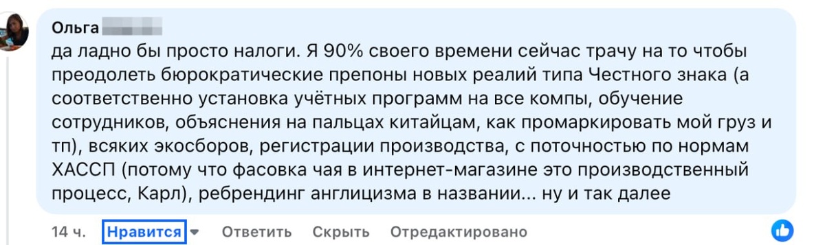Те, кто работает в торговле- производстве в РФ - мои герои. Серьезно, почитайте - импортер чая, продает в РФ. Экосборы, честный знак, маркировки, русские названия и т.п. Собственник пишет. @clickfraud.ru
