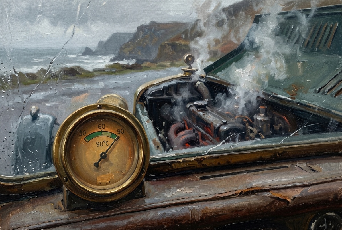 Двигатель кипит, а на приборе 90 - все в норме как будто. Головка блока цилиндров уже деформируется и скоро двигатель заклинит, но на приборе все еще 90. Водитель решает стартануть со светофора и все...Приехали...