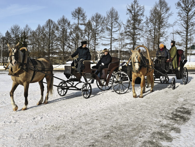 Мы были здесь год назад и смогли посмотреть не все локации: часть из них была закрыта для посещения, где-то шли съемки или подготовка к ним. В этот раз мы зашли в занесенный снегом «Ковбойский городок», где к салунам были прокопаны тропинки среди высоких сугробов – пейзаж явно не для Дикого Запада.