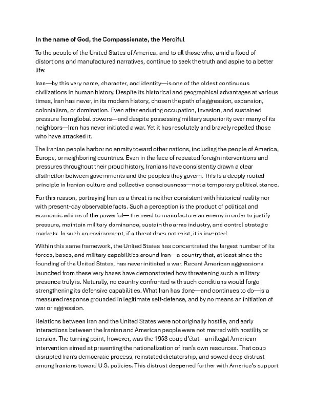 Iran's Prez Pezeshkian's message to the American people IN FULL