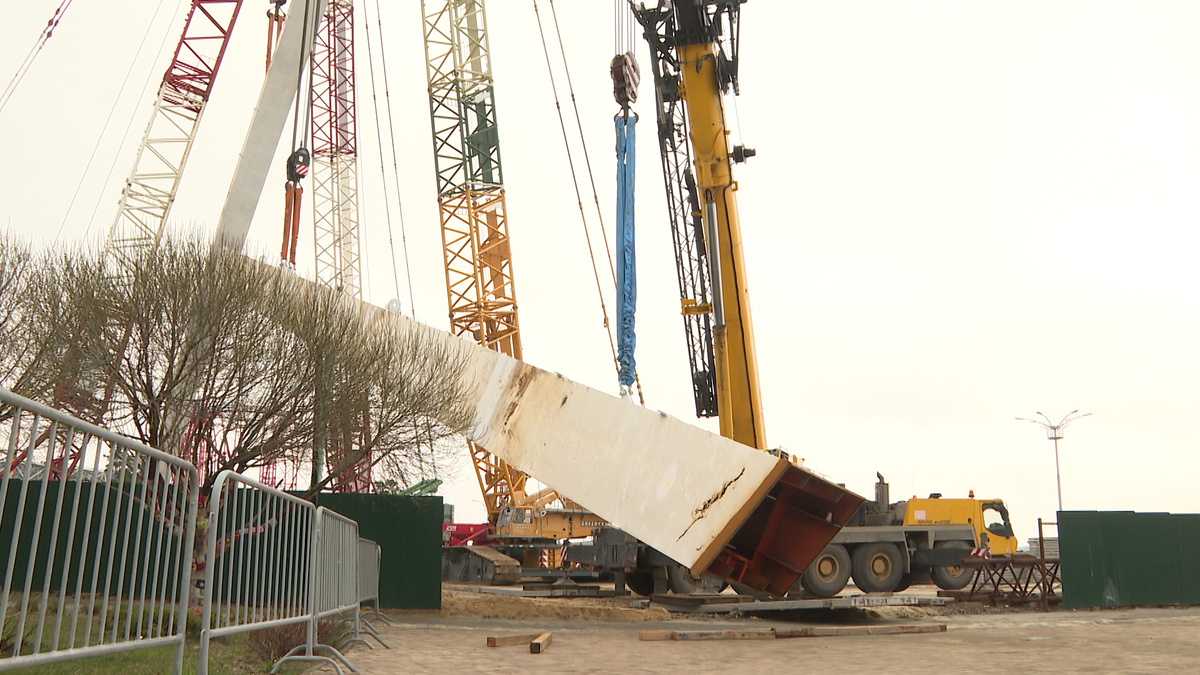 Многотонные опорные колонны 120-метрового колеса обозрения монтируют в ЦПКиО Волгограда