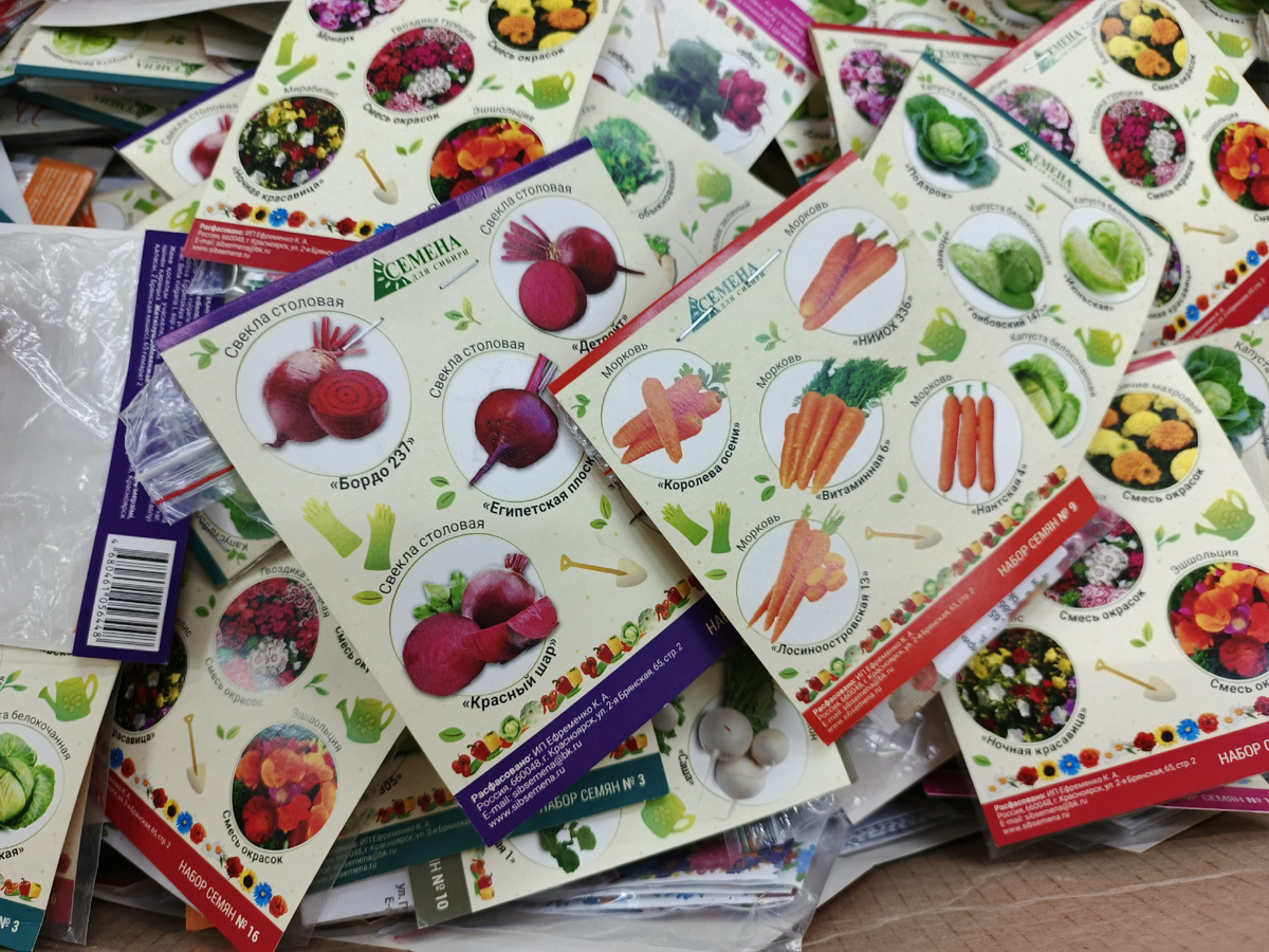 Овощной и цветочный набор семян из 5 пакетиков разных сортов. Уже можно, что-то посадить в землю и весенние дожди помогут быстрым всходам. Цена 21 рубль.