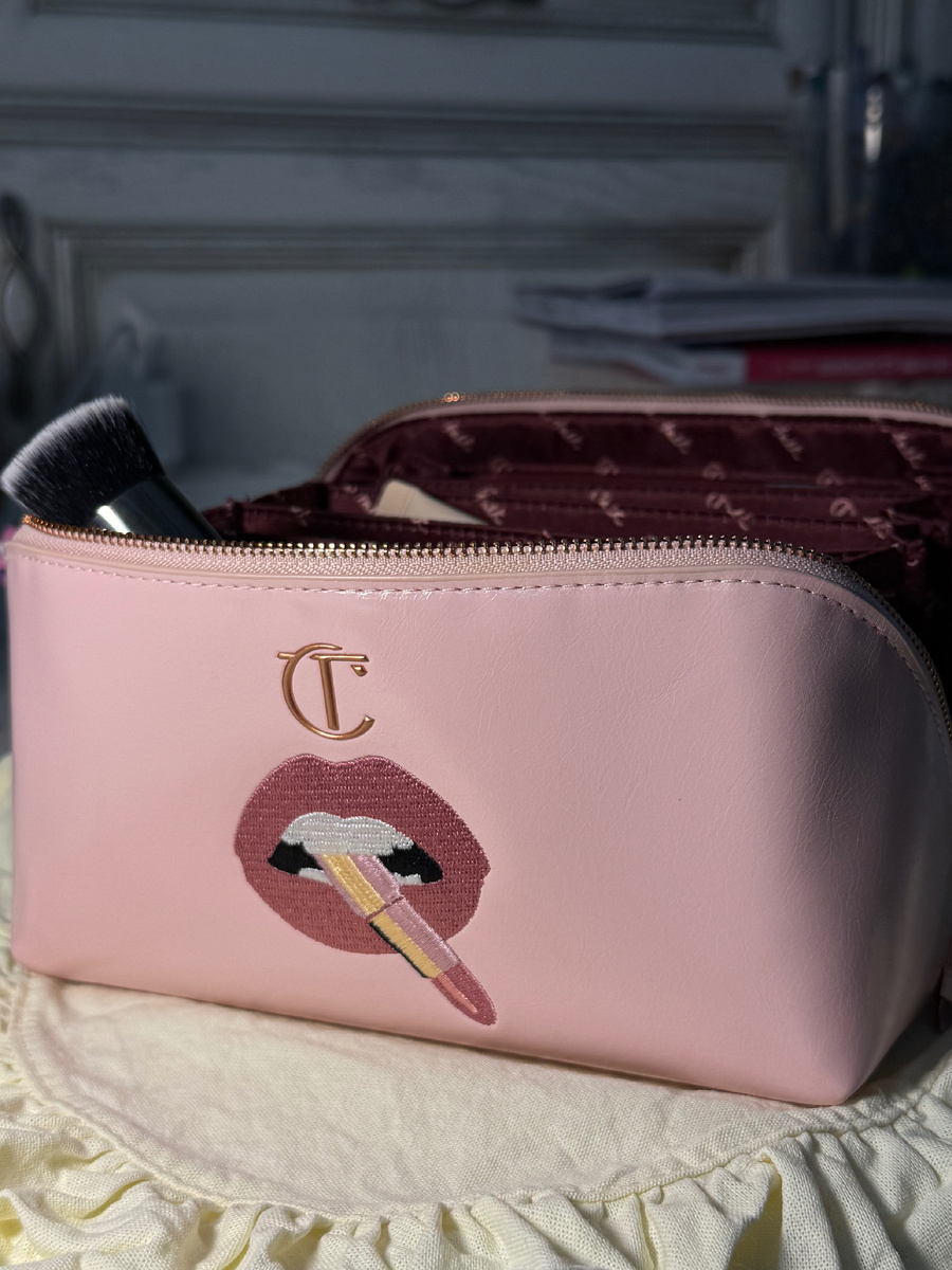 Начнем с самого главного! Конечно же это косметичка) в моем арсенале их несколько, есть большие, средние, даже имеется небольшой розовый домашний чемоданчик))), но предпочтение свое я отдала роскошному люксу —самая красивая на мой взгляд косметичка Charlotte Tilbury