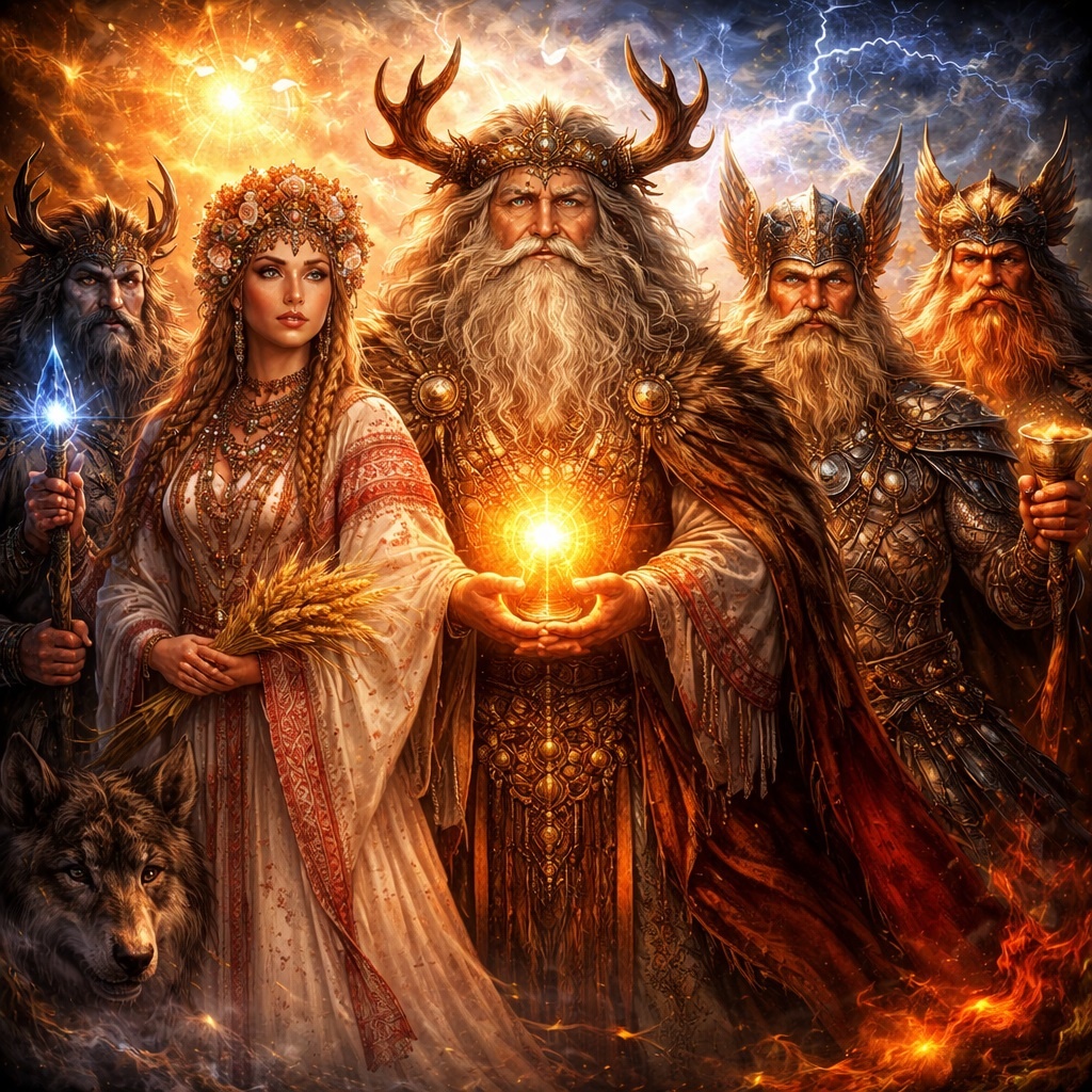 Именно это и отличает зрелый пантеон от примитивного списка. В нем есть не только “царь богов”, но и круг сил, без которых мир не работает. Поэтому, когда говорят о верховных богах славянского мира, нужно уметь различать: кто является вершиной конкретной религиозной системы, а кто — частью ее космической полноты.