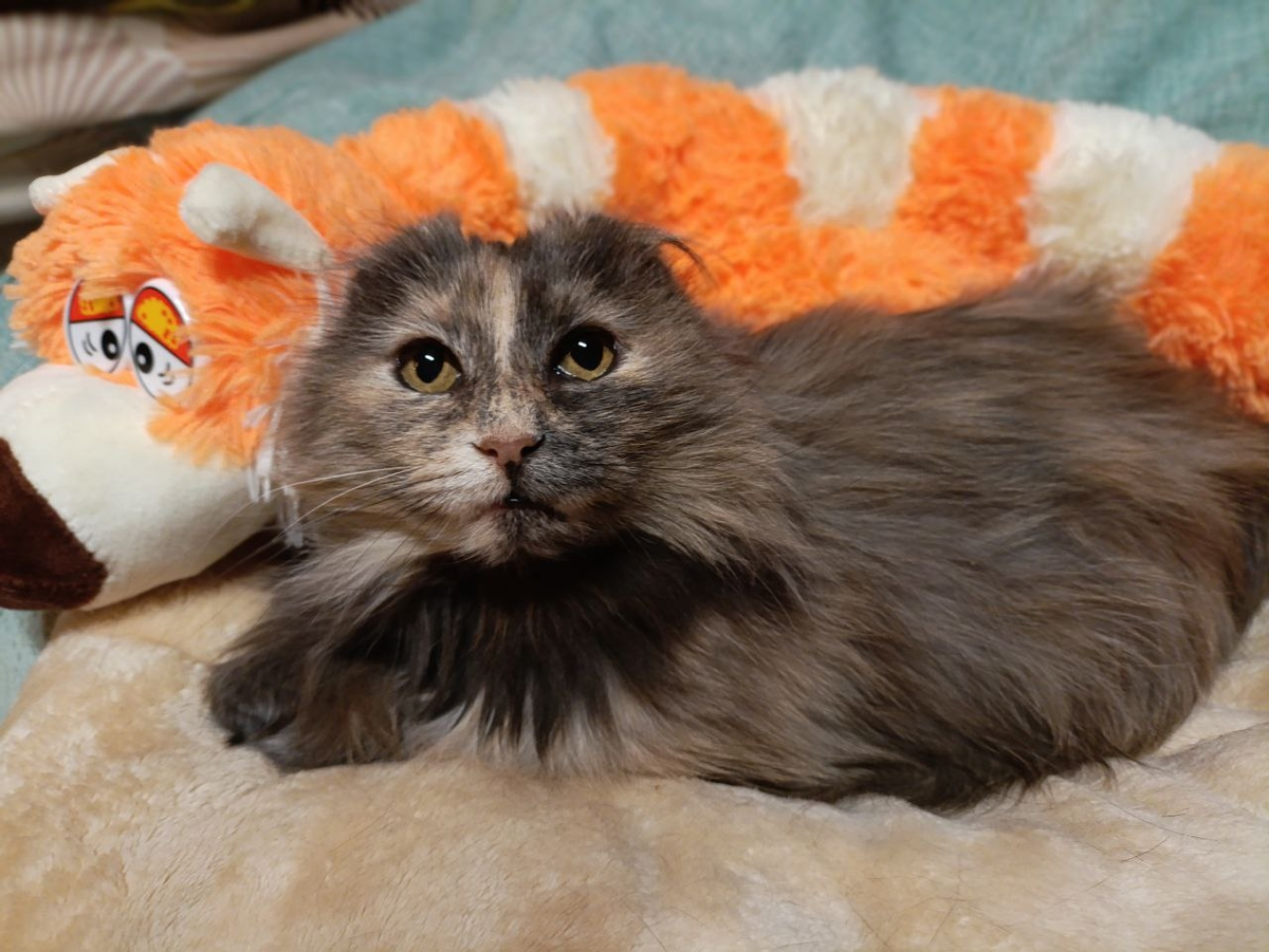 В ветклинике её обследовали, подлечили, стерилизовали и сделали прививки. По оценкам врачей, возраст около 5 лет. Ушки были обморожены, но каких-то более серьезных проблем со здоровьем нет.
