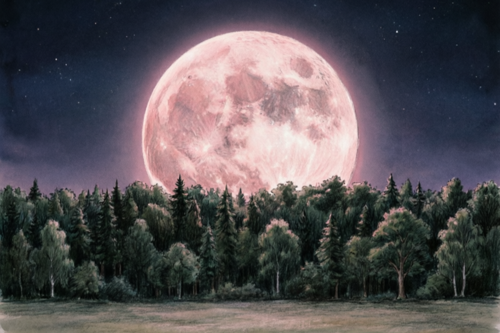 В народе её зовут Розовой. Имя пришло к нам от индейцев, которые в это время видели, как на полянах распускаются дикие флоксы. У меня под окнами они тоже скоро зацветут - нежно-розовые, как предрассветное небо. А луна сегодня была цвета старого серебра, с тёплым отливом, словно кто-то бережно начистил самовар к воскресному чаю. Астрономы сказали бы - суперлуние, перигей, диск на четырнадцать процентов больше обычного. Я же просто смотрела и чувствовала, как внутри разливается что-то древнее, почти забытое, то самое, что заставляло моих предков в такую ночь выходить на крыльцо и шептать заветные слова.