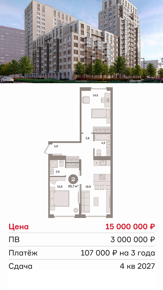 Пожалуйста! ЖК «Первый квартал» застройщик «Брусника» д. Сапроново, Московская область ст. Расторгуево (в дальнейшем МЦД-5) Срок сдачи: IV кв. 2027 Предчистовая отделка
