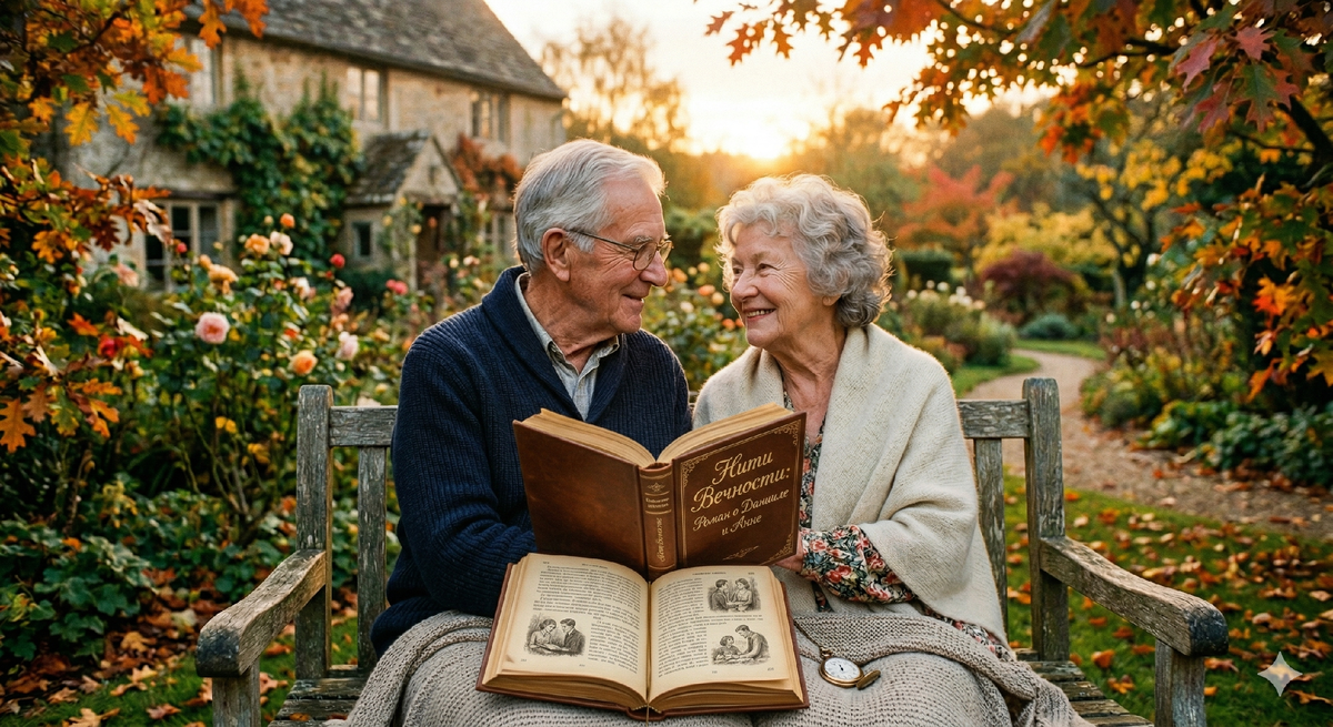 Даниилу было восемьдесят, Анне — семьдесят восемь. Они сидели на той самой деревянной скамейке в их саду, которую Даниил смастерил еще в год их свадьбы. Осень щедро одарила их сад золотом и багрянцем: листья клена и дуба медленно падали на дорожки, а воздух был пропитан прохладой и ароматом увядающих роз. Солнце, уже клонившееся к горизонту, заливало всё вокруг мягким, теплым светом, который Даниил называл «золотым часом».