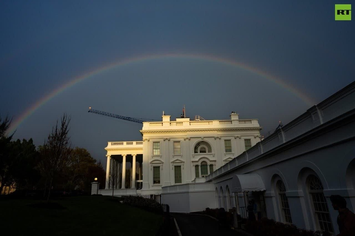 A rainbow sits above the White House ahead of Trump's speech in HALF HOUR