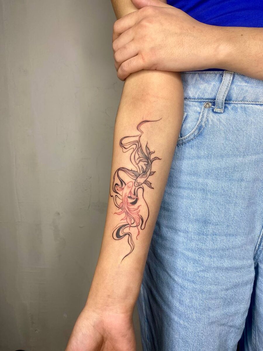 чёрная и красная — встретились на предплечье. На каждой из них — 🌙 тихий знак, который их соединяет. Навигация по # #женские_тату@prostolinii_tattoo #тату_рыбы@prostolinii_tattoo #тату_на_руке@prostolinii_tattoo Мастер: #юра_prostolinii@prostolinii_tattoo