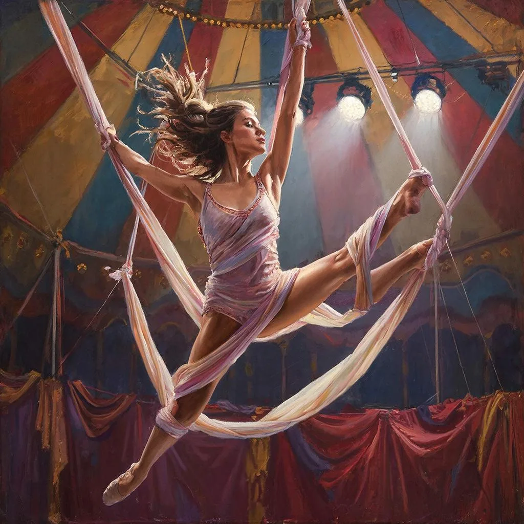 Давным-давно люди начали мечтать о полётах ещё задолго до появления самолётов и воздушных шаров. Они пытались подражать птицам, создавая конструкции из верёвок и тканей, чтобы почувствовать свободу полёта хотя бы ненадолго 🦅🏃♂️ Именно с таких попыток началась история воздушной гимнастики! Первые упоминания о "летающих" артистах относятся еще к Древнему Риму и Греции. В те времена акробаты использовали примитивные канаты и ткани, подвешенные высоко над сценой, чтобы исполнять свои трюки перед восхищённой публикой. Эти выступления были редкими и необычными событиями, вызывающими у людей восторг и трепет 🎉😱 В эпоху Средних веков представления воздушных гимнастов стали частью традиционных ярмарочных представлений по всей Европе. Артисты придумывали все более сложные и захватывающие номера, используя разнообразные приспособления, такие как лестницы, трапеции и сети. Представьте себе атмосферу средневековой площади, где зрители затаили дыхание при виде того, как артисты парят в воздухе