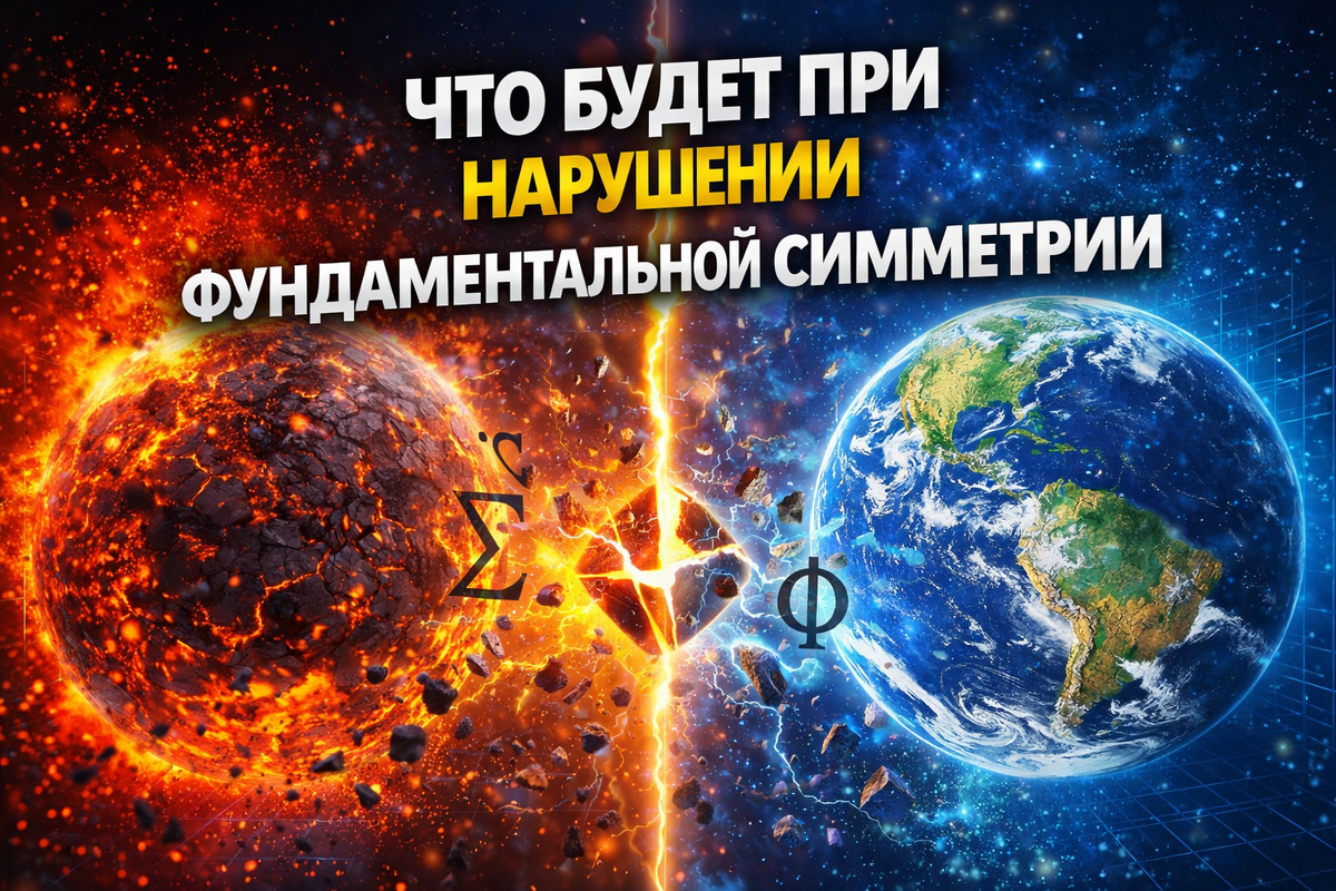 Фундаментальная симметрия - это не просто красивая идея. Это основа законов физики. Если она есть - существуют законы сохранения, стабильные частицы и предсказуемость. Если она нарушается - меняется сама структура реальности. И вопрос здесь не абстрактный. Нарушения симметрии уже происходили. И именно они создали наш мир. Но что будет, если нарушить их иначе? Симметрия означает - законы не меняются при преобразованиях. Но иногда система "выбирает" конкретное состояние. Это называется спонтанное нарушение симметрии. Простой пример: шарик на вершине холма. Симметрия есть в законах. Но не в результате. В ранней Вселенной, вероятно, существовала высокая симметрия. Но при охлаждении произошло: Например: механизм Хиггса - это результат нарушения симметрии. Без него: Теперь представим - симметрия нарушается иначе. Возможные последствия: Даже небольшое изменение приводит к: Если симметрия исчезает полностью, исчезают законы сохранения. Это означает: Физика перестает быть стабильной. Если наруш