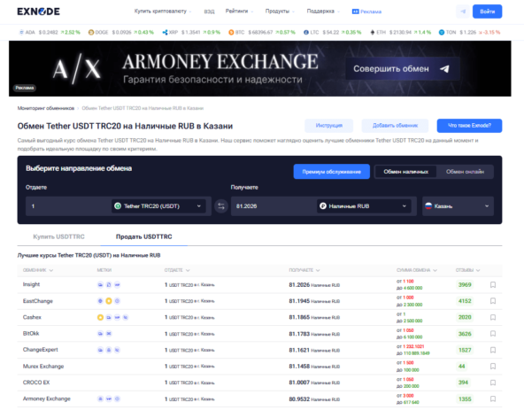 Сориентироваться в большом количестве предложений помогает мониторинг Exnode — он позволяет найти проверенные обменники криптовалюты в Казани, сравнить условия и выбрать подходящий сервис.