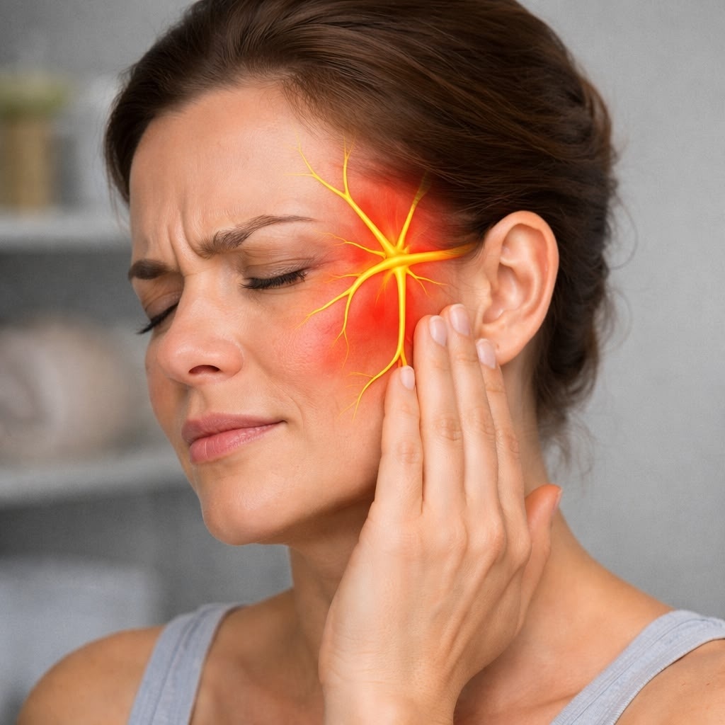 Невралгия тройничного нерва — это заболевание периферической нервной системы, сопровождающееся сильной лицевой болью. Тройничный нерв отвечает за чувствительность лица, поэтому при его поражении возникают резкие болевые приступы в области лба, щек или челюсти.
