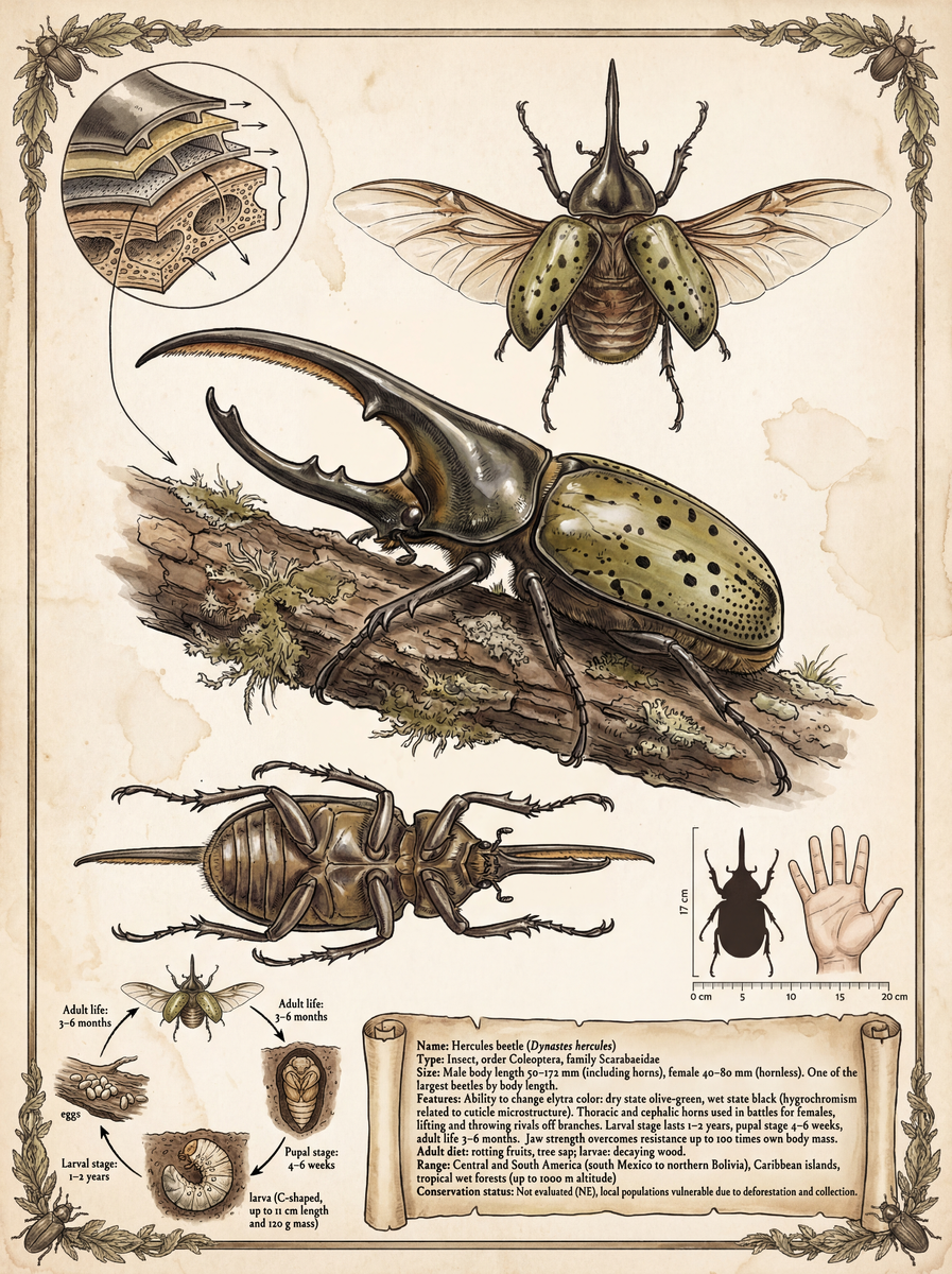 Представь себе насекомое, которое помещается на ладони, но выглядит так, будто его спроектировали создатели «Чужих». У него есть рога, панцирь, способность менять цвет и сила, которой позавидует любой тяжелоатлет. Это не фантастика. Это жук-геркулес — один из крупнейших жуков на Земле.