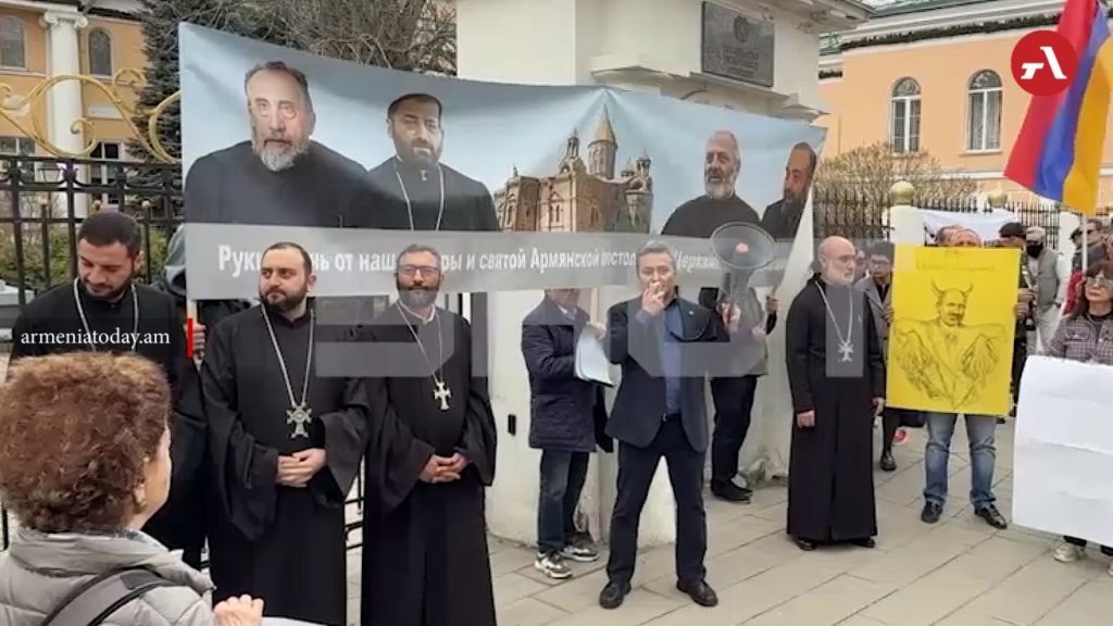 В Москве у Посольства Армении прошла акция протеста в поддержку Армянской Апостольской церкви (ААЦ), приуроченная к визиту премьер-министра Армении Никола Пашиняна в российскую столицу. Об этом Sputnik Армения сообщили в пресс-службе Российской и Новонахиджеванской епархии. Участники акции заявили о несогласии с политикой армянских властей, которую они охарактеризовали как антицерковную и противоречащую конституционным принципам. По их мнению, предпринимаемые шаги направлены против ААЦ и подрывают основы правового государства. Организаторами выступили представители общественных организаций и армянской диаспоры. В ходе акции прозвучали требования прекратить давление на священнослужителей, а также на лиц, публично поддерживающих Церковь. Участники выражали солидарность с ААЦ, скандировали «Веапар» (форма обращения к католикосу) и «Свободу епископам». Собравшиеся подчеркнули значимость ААЦ как института, играющего ключевую роль в сохранении национальной и духовной идентичности армянского