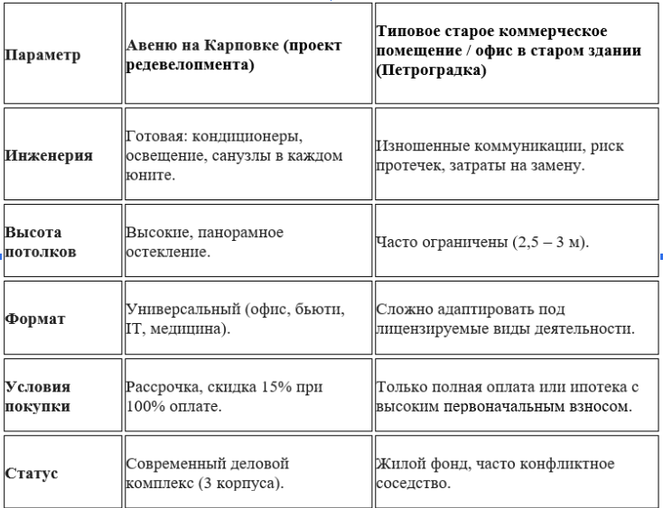 Сравнение коммерческой недвижимости в Санкт-Петербурге: редевелопмент vs типовое помещение в старом фонде