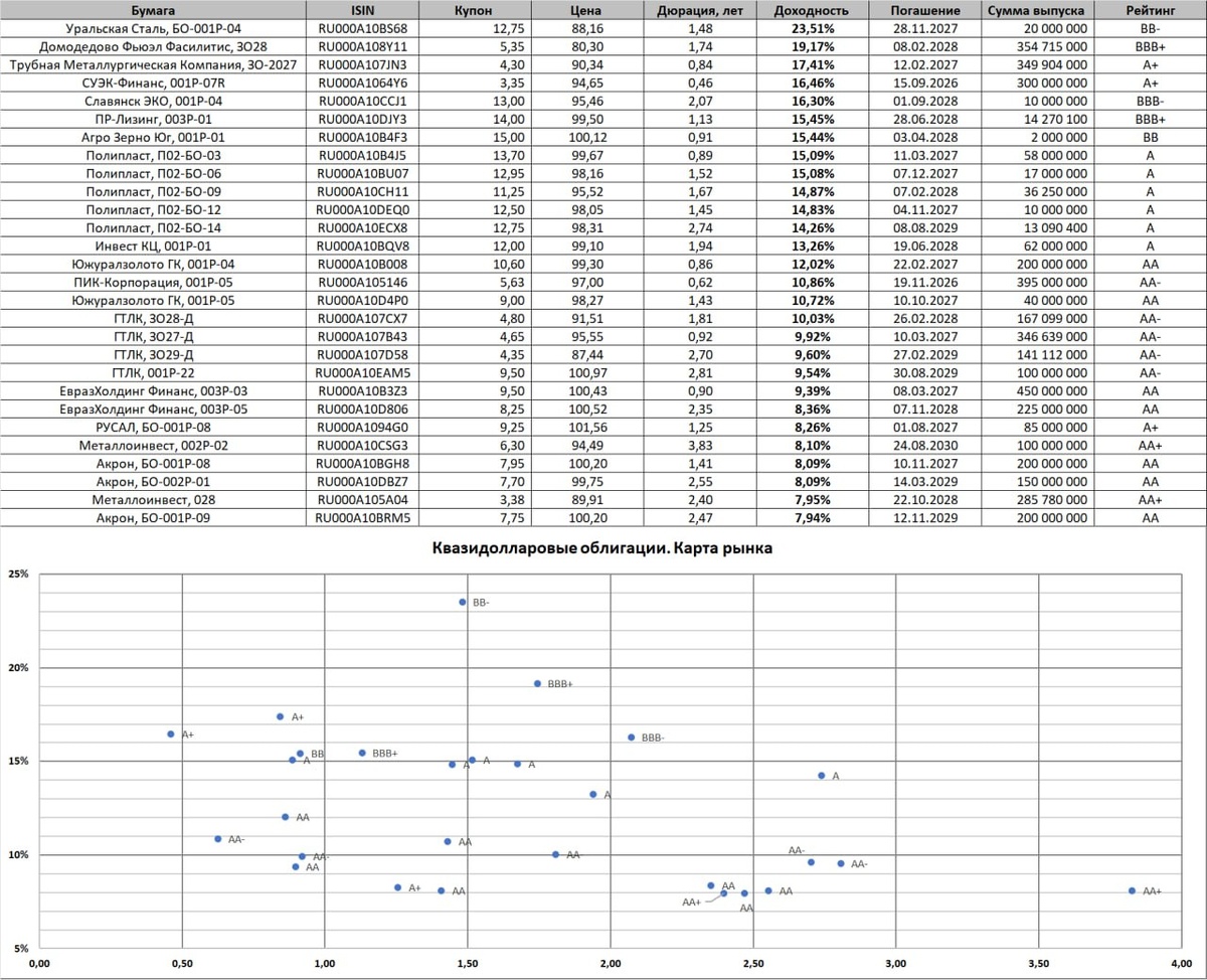 👉Чат Иволги в MAX👈 Я долго игнорировал валютные вложения. В основном со второй половины 2023 года. И в феврале 2026 вернулся к идее покупки валюты или валютных инструментов. На данный момент в наших публичных портфелях, а вместе с ними и в портфелях ДУ есть небольшая валютная позиция: юани, которые сдаются в РЕПО с ЦК. Их сейчас примерно на 3,5% от активов. Но есть и квазивалютные облигации. На иллюстрации долларовые. И если юаневая ставка РЕПО с ЦК мало предсказуема и колеблется в очень широком диапазоне, то доходности облигаций относительно устойчивы. Причем, как видим, есть ряд приличных имен с 10-15% к погашению. При ставке ФРС 3,75%. И рублевой ключевой ставке 15%. Велик шанс, что что-то из этого списка пополнит наши портфели в ближайшем будущем, и возможно, на заметную долю их капитала. Телеграм: @AndreyHohrin Не является инвестиционной рекомендацией. Ссылка на ограничение ответственности Следите за нашими новостями в удобном формате: Telegram, Youtube, RuTu