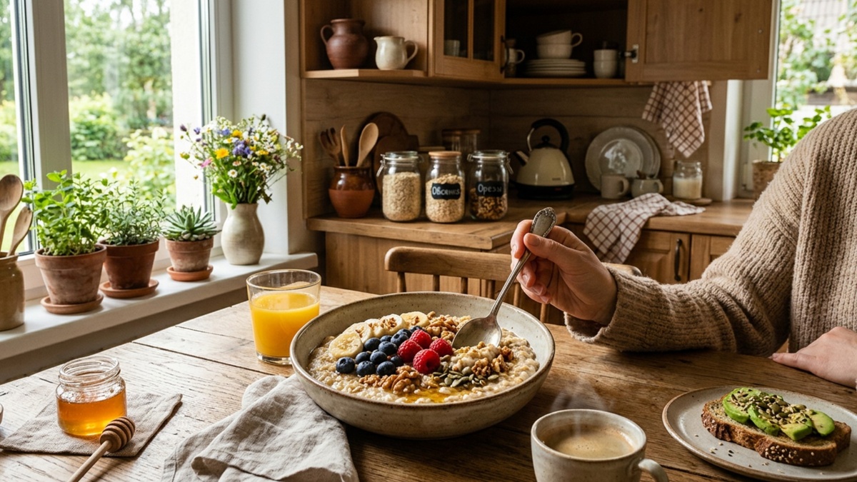 Овсяная каша входит в число наиболее популярных завтраков многих семей во всем мире. Имея богатый комплекс полезных веществ, овсянка является поставщиком белка, линолевой кислоты, лецитина, клетчатки, витаминов А, группы В, Е, К и РР, минеральных веществ, таких как натрий, калий, магний, кальций, железо, и других ценных для нашего организма компонентов. «Витамин А необходим для образования зрительных пигментов, которые помогают глазам адаптироваться в темноте, витамины группы В требуются для восстановления энергии, борьбы с лишними килограммами и улучшения работы сердца, витамин Е служит качественному усвоению белков, жиров, углеводов и витаминов А, D, витамин К дает организму энергию, а витамин РР содействует процессу кроветворения», — говорят диетологи. Употребление каши хорошо сказывается на деятельности сердечно-сосудистой системы, стабилизации показателей артериального давления, профилактике атеросклероза, нормализации метаболизма, регулировании работы нервной системы, укреплении
