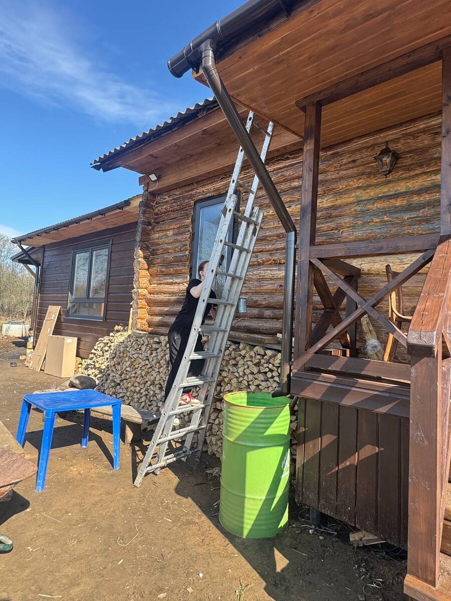 !!! «Не стойте и не прыгайте, не пойте, не пляшите, там, где идёт строительство или подвешен груз!» (м/ф «Пластилиновая ворона»). Каждый раз, на собственном опыте убеждаешься в некоторых прописных истинах! Например, никогда не надо стоять под лестницей, на которой кто-то работает. Потому что, в самый неожиданный момент, эта лестница прилетает тебе по затылку с такой силой, что в глазах темнеет и в голове раздается звонкий гул. Вчера так и произошло! Полина начала подниматься по лестнице надо мной, но, лестница стояла очень шатко и, конечно, она меня догнала. Я спикировала лбом на ступени, получила по затылку, и онемев от неожиданности, пошла прикладывать снег к своим новым шишкам. Но, в целом, полёт нормальный! Вроде бы все помню. Часть вторая. В покраске дома есть что-то медитативное. В руках мягкая шелковистая кисточка, баночка с краской, солнышко греет, кругом стоит оглушающая тишина. А ты возишь кисточкой и ни о чем серьёзном не думаешь. Скажите, а вам хотелось бы так? Деревня,