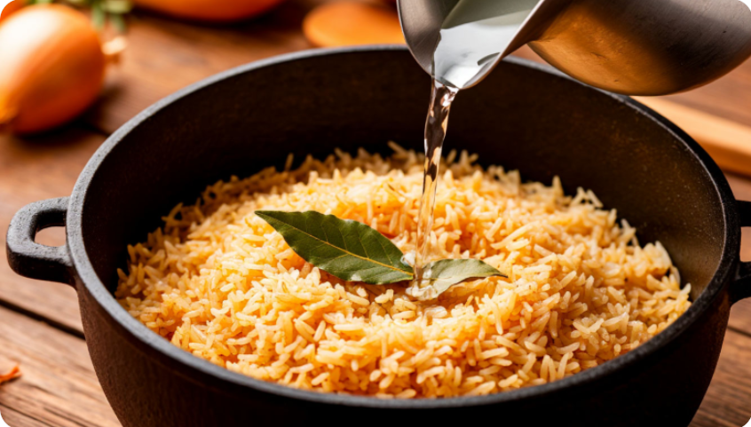 В Узбекистане и Таджикистане не выливают кипяток прямо на рис. Набирают половник и аккуратно льют на стенку казана, чуть выше уровня риса. Вода стекает вниз, не размывая слой зирвака и не сбивая рисовую «шапку». Такой способ гарантирует, что рис не разварится даже у новичка.