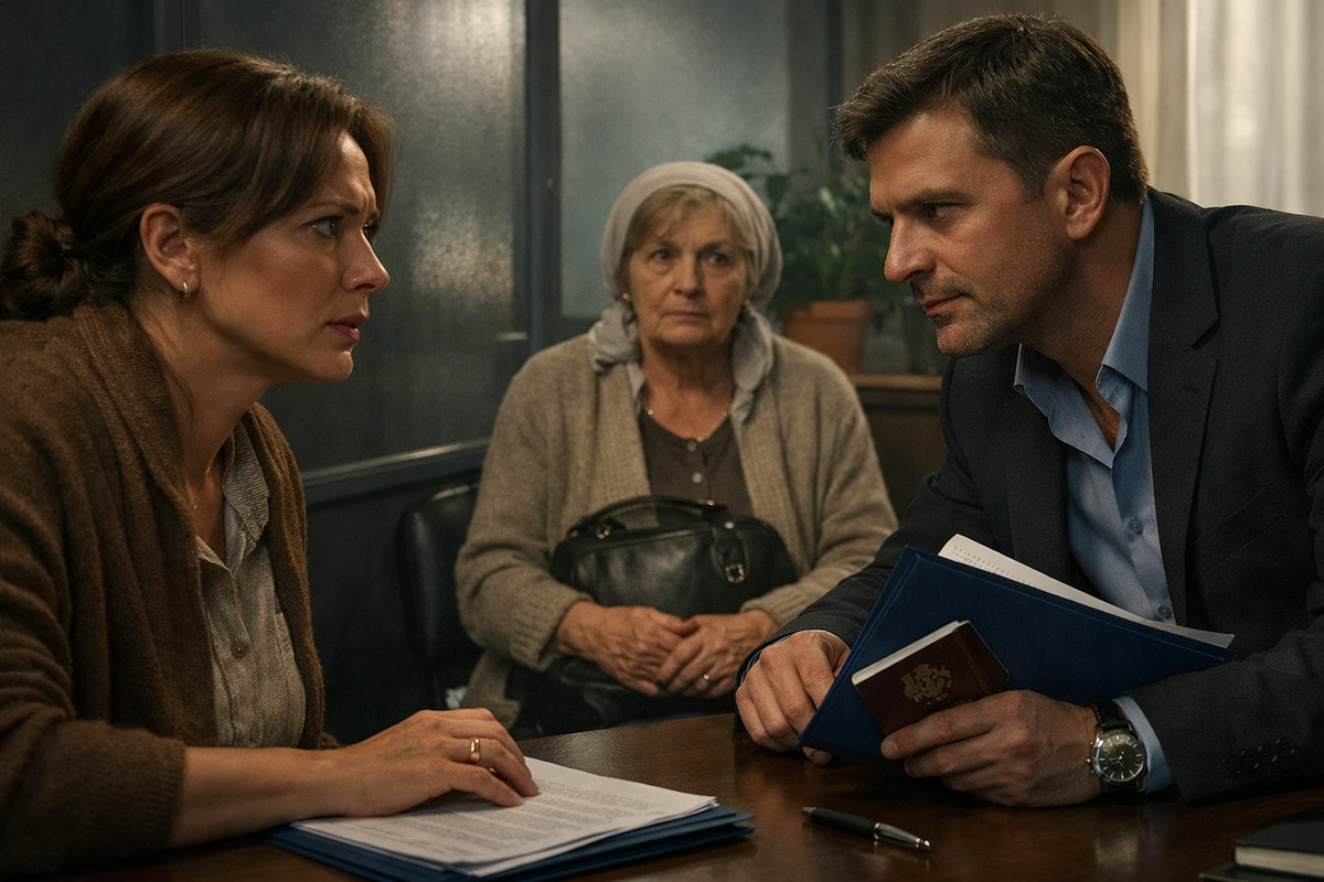 Он сказал это тем тоном, которым говорят неразумному человеку: не мешай взрослым. И именно в этот момент Лидия заметила, что текст лежит уже с закладкой, ручка для мамы приготовлена, паспорт раскрыт на нужной странице, а Виктор держится не как сын, пришедший советоваться, а как человек, у которого всё давно решено.