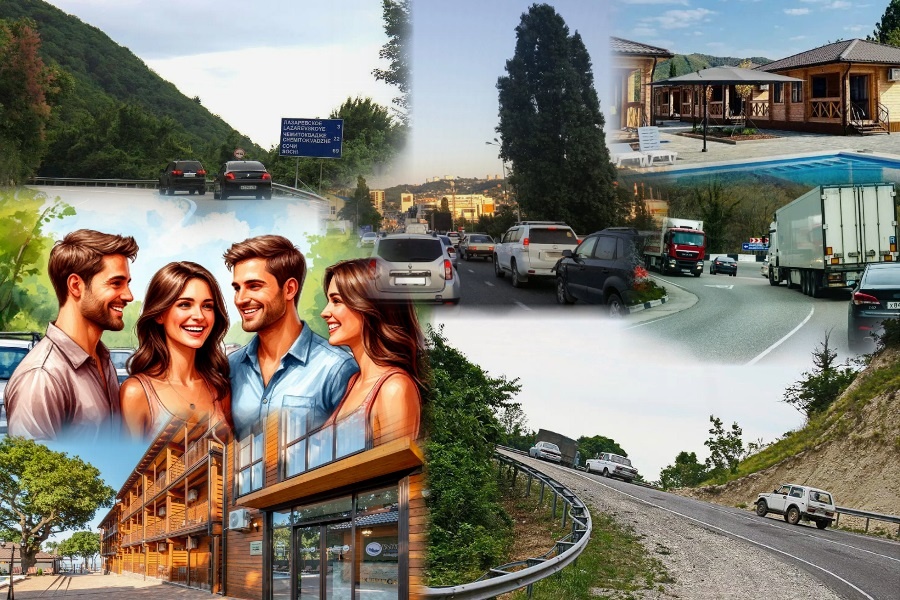 Так мы и плелись со скорость 30-40 км/час, а бывало, так вообще ползли почти с пешеходной скоростью, чаще всего это было, если впереди грузовик по извилистой дороге шёл. Но хоть не стояли и то хорошо. В город Туапсе заехали, простые городские улицы, со светофорами, пешеходными поворотами. Но машин тут было примерно, как в центре большого города в час пик. Метров 300-400 проползли и встали минут на пять. Очередная остановка пять, десть, пятнадцать минут, мотор не глушу, без кондиционера тут точно можно поджариться.
