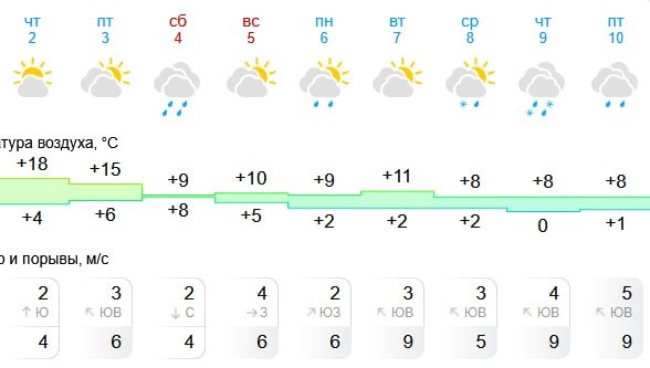 Погода начнет портиться уже в субботу — пойдет дождь, так что стоит одеться теплее. А 8 и 9 апреля синоптики обещают снегодождь.