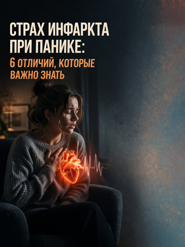 Потому что паническая атака умеет очень убедительно копировать опасность. Сердце колотится, грудь сжимает, дыхание сбивается, может бросать в жар, кружиться голова, появляется ужас и мысль: «Это не тревога. Это инфаркт». И в этот момент человека начинает пугать уже не только симптом, а сам смысл, который он ему приписал. Сразу важное уточнение!