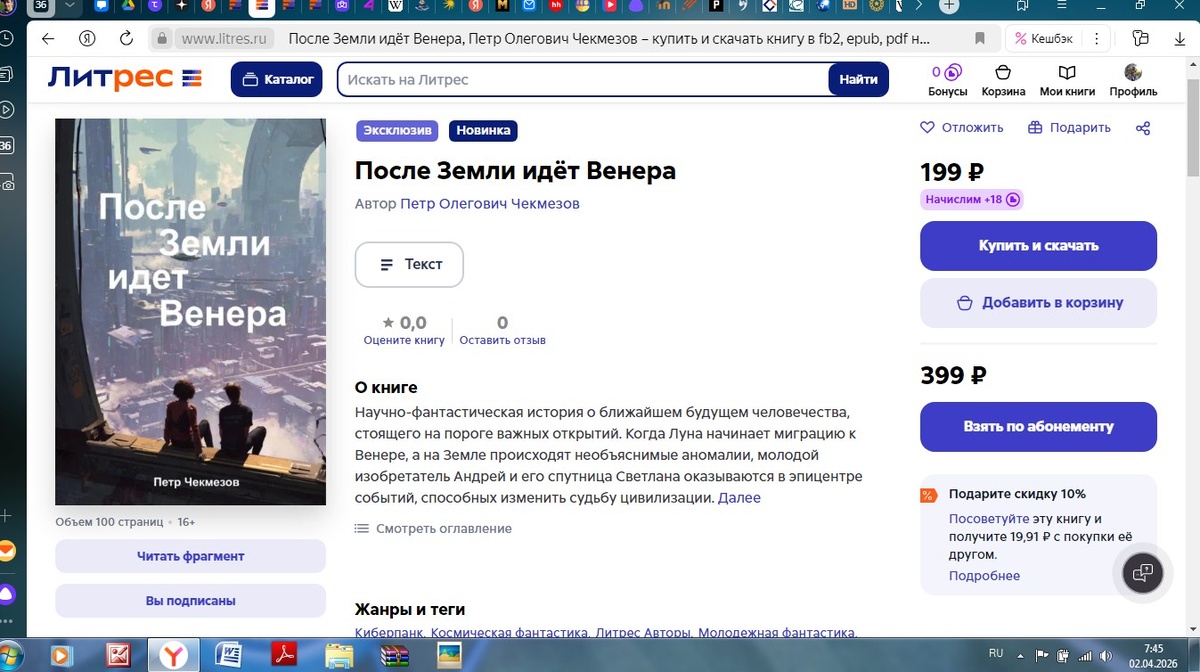 - Научно-фантастическая история о ближайшем будущем человечества, стоящего на пороге важных открытий. Когда Луна начинает миграцию к Венере, а на Земле происходят необъяснимые аномалии, молодой изобретатель Андрей и его спутница Светлана оказываются в эпицентре событий, способных изменить судьбу цивилизации. Неожиданные открытия на Марсе, загадочные послания ноосферы и помощь продвинутого ИИ приводят героев к разгадке древней тайны: оказывается, цивилизации в Солнечной системе мигрируют с планеты на планету. В центре сюжета история о том, как два обычных человека становятся частью грандиозного проекта по спасению человечества. Вместе с учеными они разрабатывают новые технологии, учатся взаимодействовать с ИИ и ищут способы выживания в изменившемся мире. Уникальное сочетание научной фантастики, философской притчи и приключенческого романа раскрывает темы ответственности за будущее, единства перед лицом глобальных перемен и возможности технологий служить на благо всего живого.