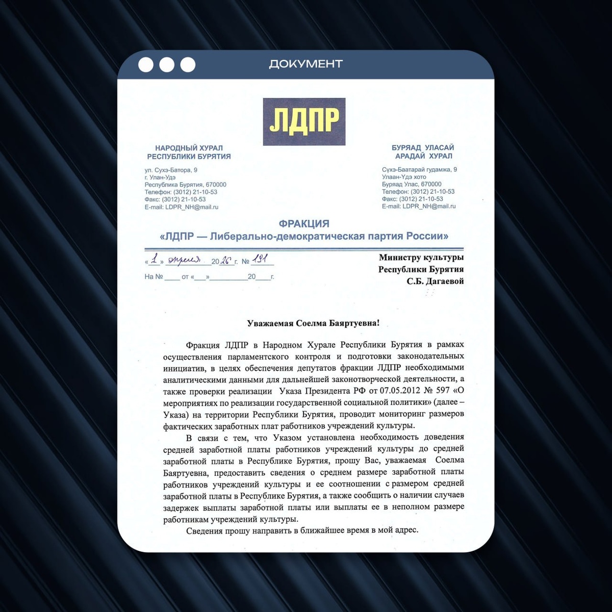 ⚡️ ЛДПР проверит уровень зарплат работников культуры Бурятии