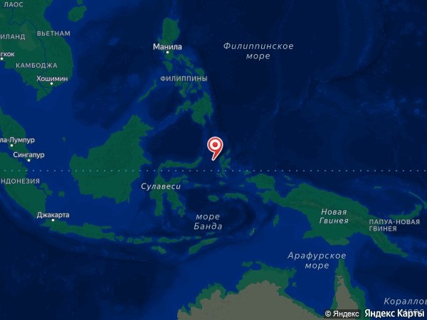 В четверг, 02 апреля 2026 года, в 03:23 (UTC). Магнитуда: 6.0 Глубина: 10 км. Широта / Долгота: 1.276 / 126.659 Каталог: EMSC 📍 Близлежащие населенные пункты: В 203 км к востоку от Манадо, Индонезия. В 97 км к северо-западу от Тернате, Индонезия.