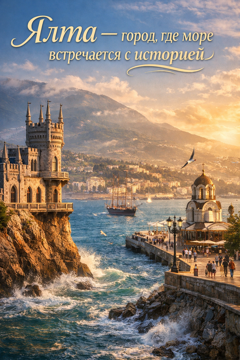 Ялта — это не просто курорт на карте Крыма. Это настроение. Это мягкий морской воздух, пропитанный ароматом кипарисов, это шум волн, который словно стирает усталость, и это город, где каждый уголок хранит свою историю.