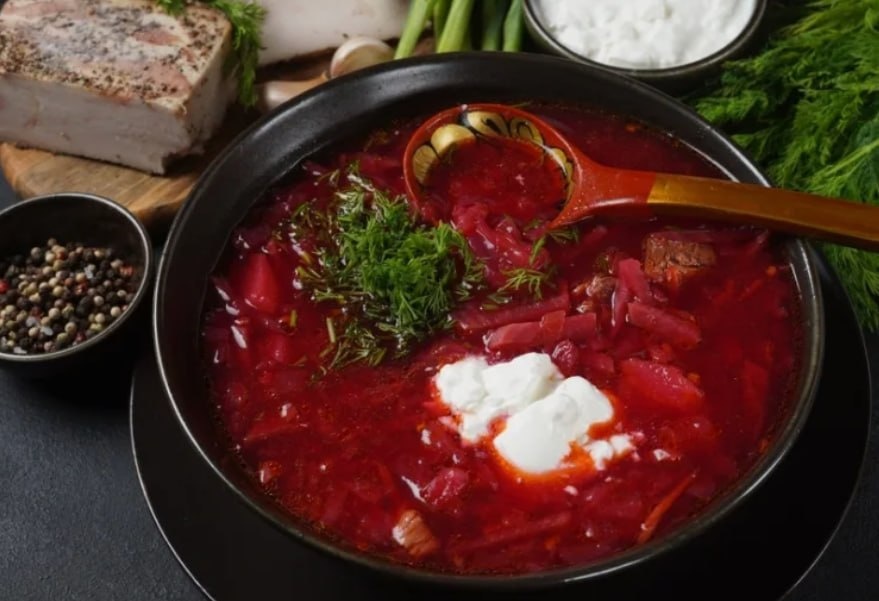? ! Не просто, а очень просто - заменить белокочанную (с очень грубой клетчаткой) на нежную цветную. Замороженная тоже подойдёт. Я взяла классический рецепт красного или московского борща - когда свёкла пассеруется с максимальным сохранением цвета. Поэтому он и красный. В южнорусских борщах и украинском свекла вываривается и для этого берется специальная бледная, не бордовая. Борщ получается с янтарным оттенком. Все рецепты борщей объёмом и накалом страстей похожи на романы - хотите читайте, хотите готовьте)) Борщ красный классический - мясо на косточке — 0,5–0,7 кг; - картофель — 3–4 клубня среднего размера (250–300 г); - капуста — 300 г; - морковь — 1 корнеплод сладкого сорта (100 г); - свёкла — 2 штуки (200 г); - лук репчатый — 1 головка (100 г); - чеснок — 2 зубчика; - растительное масло — 2–3 ст. л.; - лавровый лист — 2–3 шт.; - чёрный и душистый перец — несколько горошин; - томатная паста — 2 ст. л.; - соль, сахар, уксус — по вкусу. Перечисленных продуктов хватит на 5–6 п