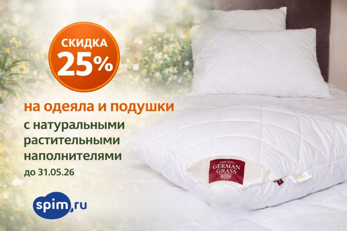 с натуральными растительными наполнителями ⏳Успейте до 31.05.26 Идеально для тех, кто ценит: -натуральные материалы -комфортный и здоровый сон -лёгкость и воздухопроницаемость German Grass Подушки — https://spim.ru/shop/podushki/germangrass/ Одеяла — https://spim.ru/shop/odejala/german_grass/ Grass Familie Подушки — https://spim.ru/shop/podushki/grass_familie/ Одеяла — https://spim.ru/shop/odejala/grass_familie/ 💡 Обновите постель — почувствуйте разницу уже с первой ночи!
