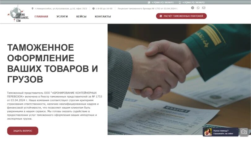 Загружаем тексты, тарифы, инструкции для клиентов и образцы документов; оптимизируем мета‑теги и локальные ключи (таможенное оформление, контейнерные перевозки). Настроим Google/Яндекс‑аналитику и отчёты по конверсиям.
