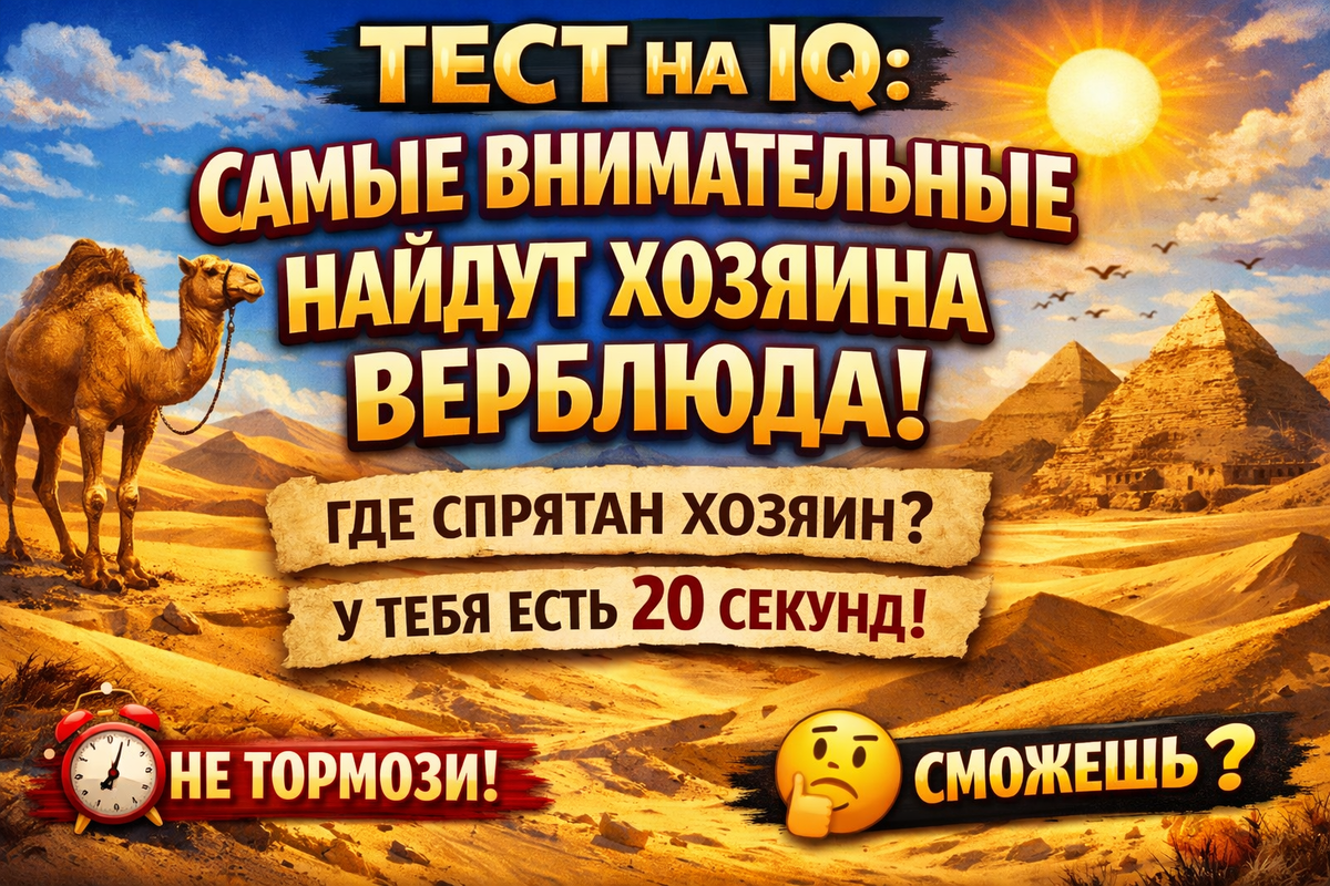 Я видела сотни подобных задач в своей практике и замечаю повторяющуюся ошибку: люди смотрят как камерой телефона - прямо и жестко, фиксируют центр и не отпускают взгляд. Как психолог, я прошу: расслабьтесь. Дайте глазам небольшую паузу, переведите взгляд чуть в сторону, затем верните. Внимание работает лучше, когда оно не зажатое. Советы, которые реально помогают найти «владельца верблюда»: