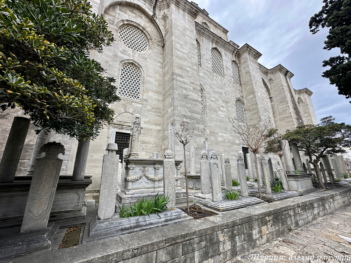 Но главные сооружения здесь — два мавзолея (тюрбе): султана Сулеймана Великолепного и Хюррем Султан — одного из величайших правителей Османской империи и его любимой супруги, одной из самых известных и влиятельных женщин в истории Османской империи.