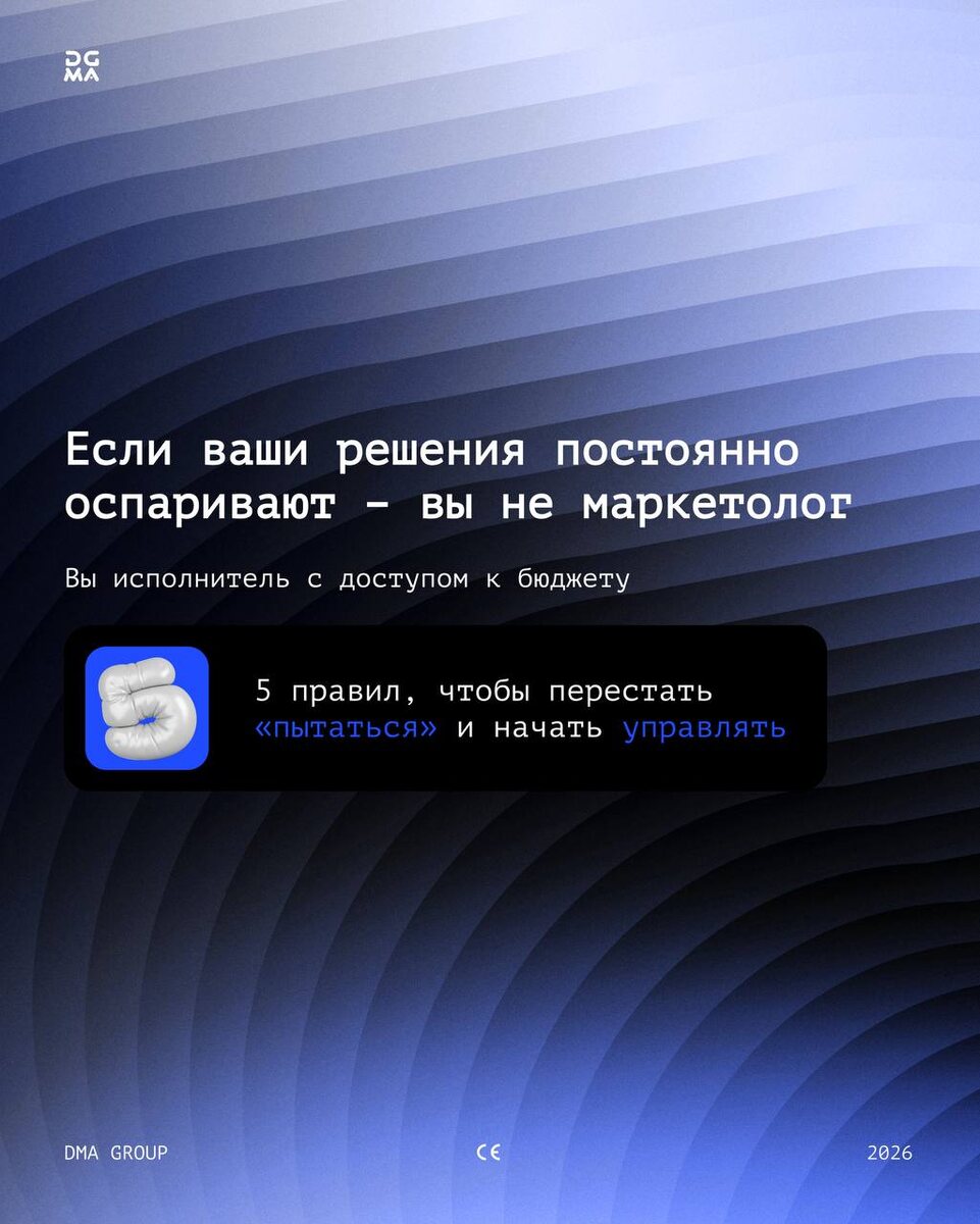 Если ваши решения постоянно ставят под сомнение, значит, вы работаете на уровне действий, а не системы. Маркетинг про цифры, приоритеты и ответственность за результат. Собрали 5 правил, которые переводят из режима исполнителя в позицию человека, который реально управляет ⬆️