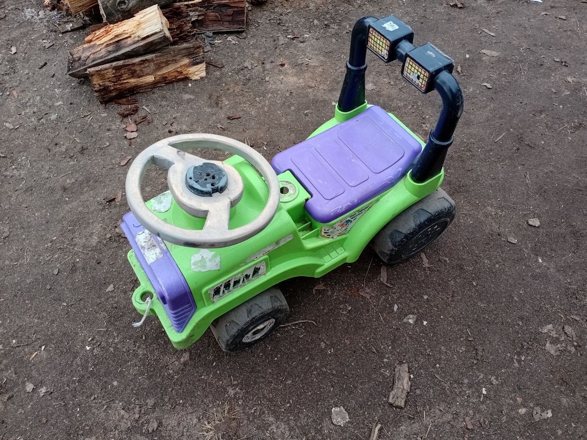 Дочь отжала у двоюродного брата старую сломанную игрушку-трактор.Прасковья Ангелина прям какая то! 🙂 Синий трактор маленький дома не