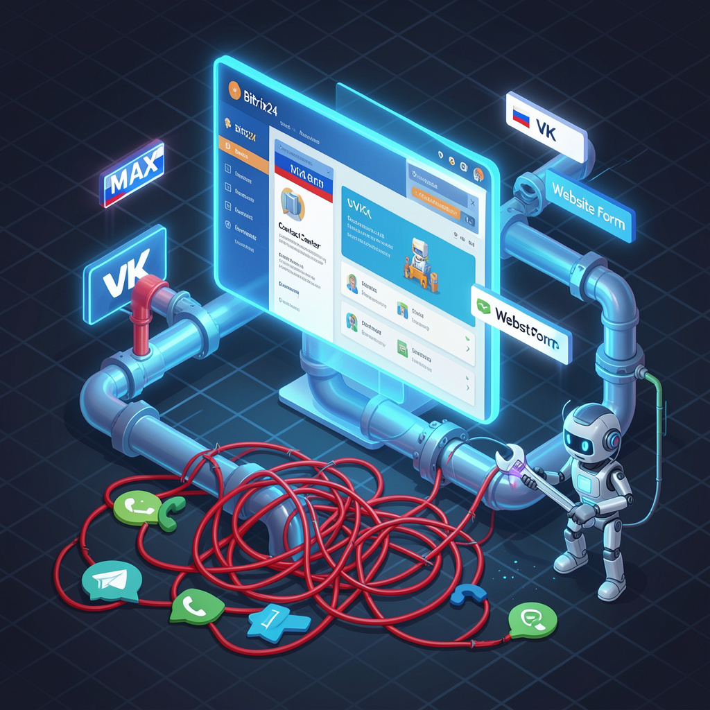 Битрикс24 решает эту проблему не магией, а жёсткой логикой и принудительной дисциплиной процессов. Основная связка, которая перекрывает потери клиентов — это Контакт-центр + CRM-воронки + Принудительные роботы.