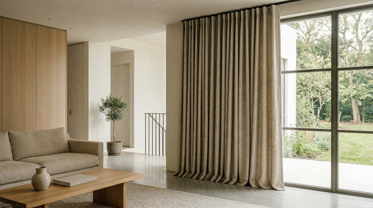 - Риски: при занижении коэффициента складка «схлопывается», превращая портьеру в плоское, тяжёлое и безликое полотно. При превышении (свыше 2.5) ткань перегружается, а драпировка теряет управляемость и начинает «стоять», нарушая эстетику окна.