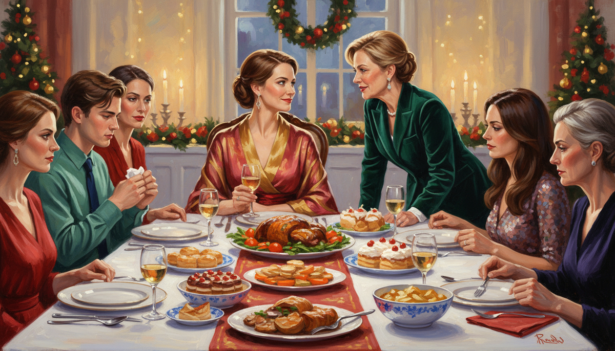 Праздничный стол — это вообще отдельный социальный феномен. Семья, которая весь год живёт каждый своей жизнью, вдруг оказывается за одним блюдом оливье. С накопленными обидами. С нереализованными ожиданиями. С тихой завистью, которую никто не назовёт своим именем.