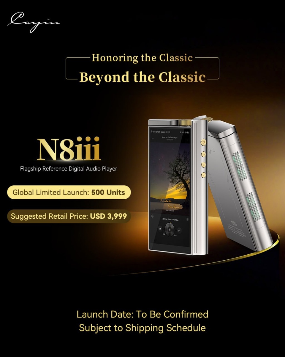 Cayin официально раскрыла ключевые особенности N8iii — нового референсного DAP, который явно нацелен на ультра-премиальный сегмент портативного аудио. 💰 Рекомендованная цена — $3,999 🌍 Глобальный лимитированный запуск — 500 устройств 📅 Дата начала продаж пока не подтверждена и будет зависеть от графика поставок ⚙️ Что известно о Cayin N8iii: — 6-е поколение ламповой схемы Nutube 6P1 — Три варианта тембра: Tube Classic, Tube Modern и Solid-State — Новая AKM-архитектура ЦАП: 2 × AK4191EQ + 4 × AK4499EXEQ Полностью балансная параллельная схема с differential current output — Три режима усиления: A+ / A / AB — Два режима выходного каскада: P / P+ — Hyper Mode 🔊 Мощность на выходе: — до 900 мВт через single-ended — до 1285 мВт через balanced 🔋 Аккумулятор 13,500 мАч Заявлено до 12 часов воспроизведения и поддержка PD 2.0 fast charging 🎛 Дополнительные особенности: — двойной электронный регулятор громкости MUSES72320V — 3.5 мм SE и 4.4 мм BAL — Line Out / Preamp Out — фирменная