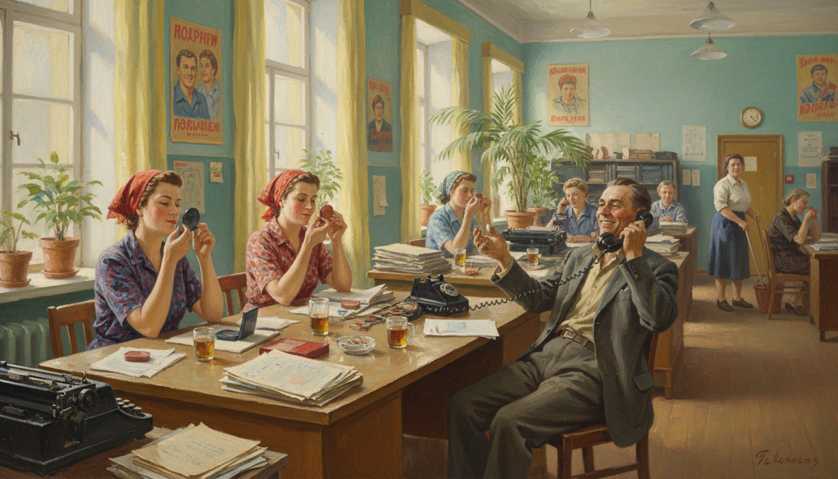 Помню, как в очередной раз пересматривала «Служебный роман» и поймала себя на странной мысли. Я смеялась над теми же сценами, что и двадцать лет назад. Но теперь смех был с привкусом узнавания — не ностальгического, а профессионального. Потому что всё это я видела в реальных офисах. Буквально. Рязанов снял гениальную комедию в 1977 году. Но если смотреть её глазами человека, который хоть раз работал в серьёзной компании, картина превращается в учебное пособие. Только с обратным знаком. Начнём с утра. Помните, как начинается каждый рабочий день в статистическом учреждении? «Каждое утро в нашем заведении начинается одинаково — это уже обычай, традиция, ритуал». И дальше — коллеги накладывают макияж прямо на рабочем месте, наносят духи, обсуждают личные дела. Это не просто мило и по-советски домашне. Это нарушение базового офисного этикета. Деловой макияж заканчивается дома. Не в лифте, не в туалете перед совещанием, и уж точно не за рабочим столом. Офис — не будуар, и смешение этих прост