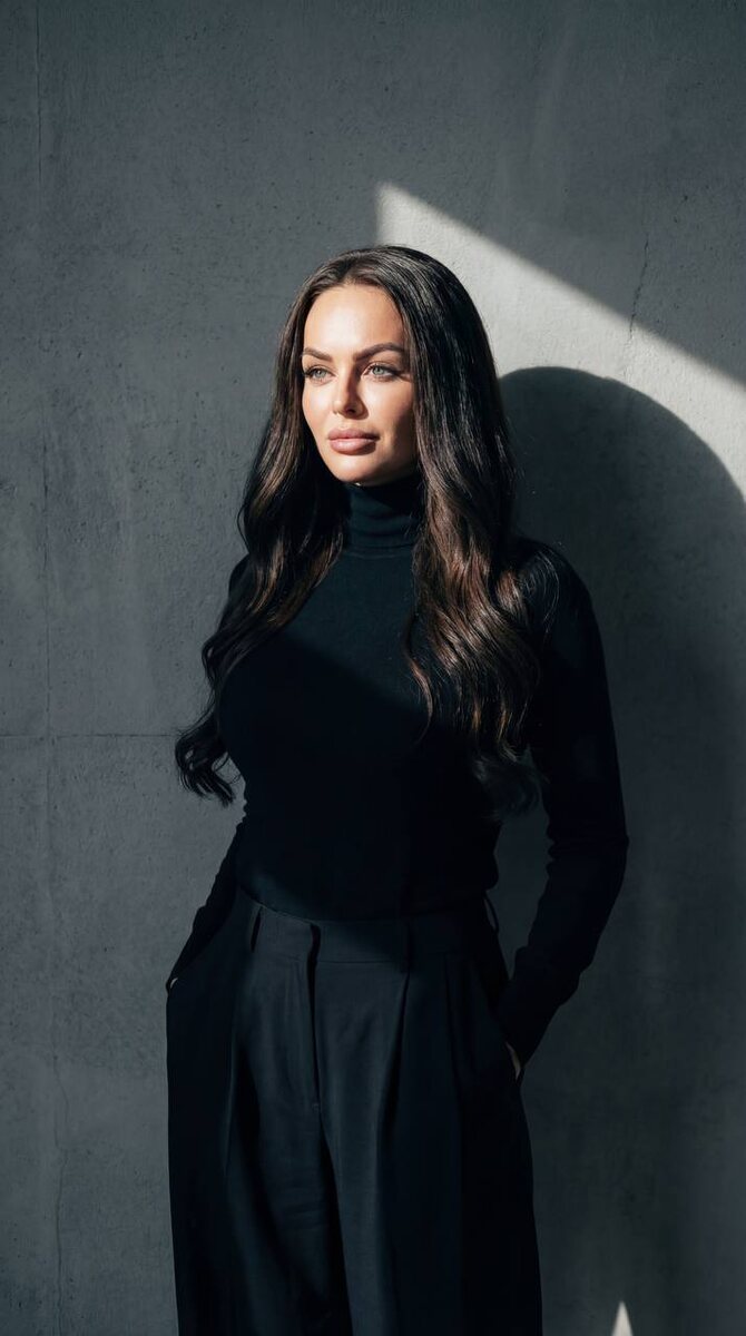 Портрет в чёрной водолазке с драматичным солнечным светом