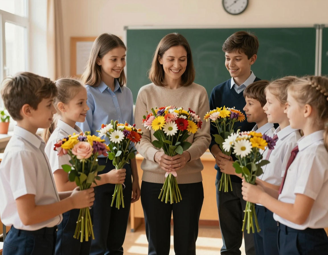 День учителя (5 октября) — прекрасный повод выразить благодарность педагогам за их труд и терпение. Один из самых традиционных и трогательных подарков — букет цветов. Разберёмся, какие цветы лучше выбрать, как их оформить и чего стоит избегать при выборе композиции. Цветы — это не просто красивый жест, а символ: Для женщины‑педагога: Для мужчины‑педагога: Для молодого учителя: Для опытного педагога: Даже скромный подарок может быть душевным: Выбирая цветы на День учителя, главное — не стоимость букета, а искренность намерений. Даже скромный букет, подаренный с благодарностью, доставит радость педагогу. Ориентируйтесь на: Дополнив цветы открыткой с тёплыми словами, вы сделаете подарок по‑настоящему запоминающимся. Пусть ваш букет станет символом признательности и уважения к труду педагога!