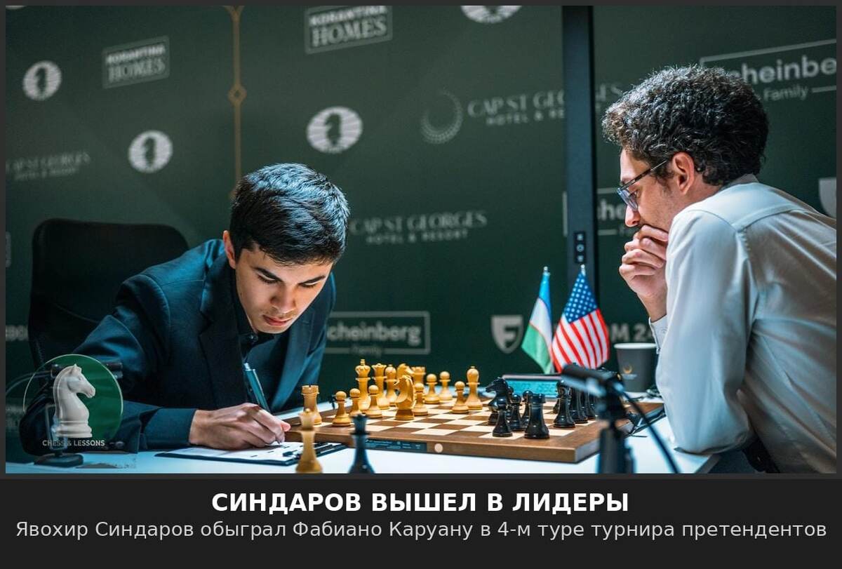Главное шахматное событие 1 апреля — Явохир Синдаров обыграл Фабиано Каруану в 4-м туре турнира претендентов и единолично вышел в лидеры с